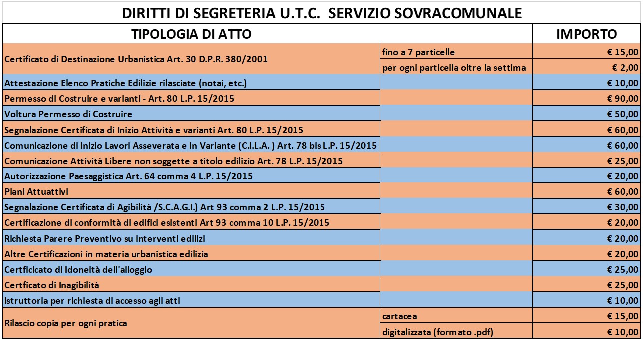 • eventuali ricevute di avvenuto pagamento dei diritti di segreteria, se dovuti, tramite il portale dedicato al link https://www.comune.giustino.tn.it/Servizi/Pagamenti-elettronici-PagoPA.