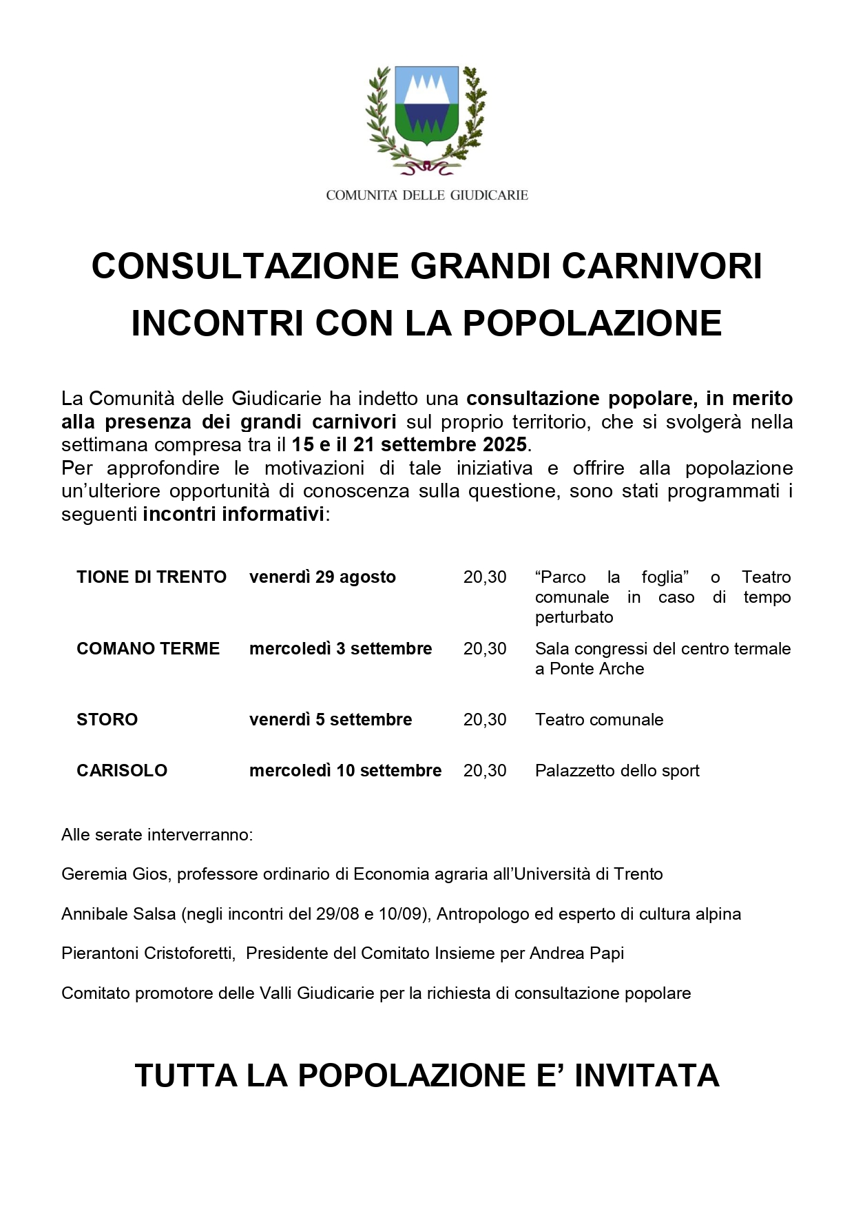 La Comunità delle Giudicarie ha indetto una consultazione popolare, in merito